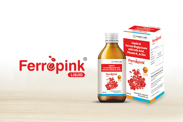 Ferropink Liquid: Liquid of Ferrous Bisglycinate 15 mg with Folic Acid, Vitamin B12 & Zinc